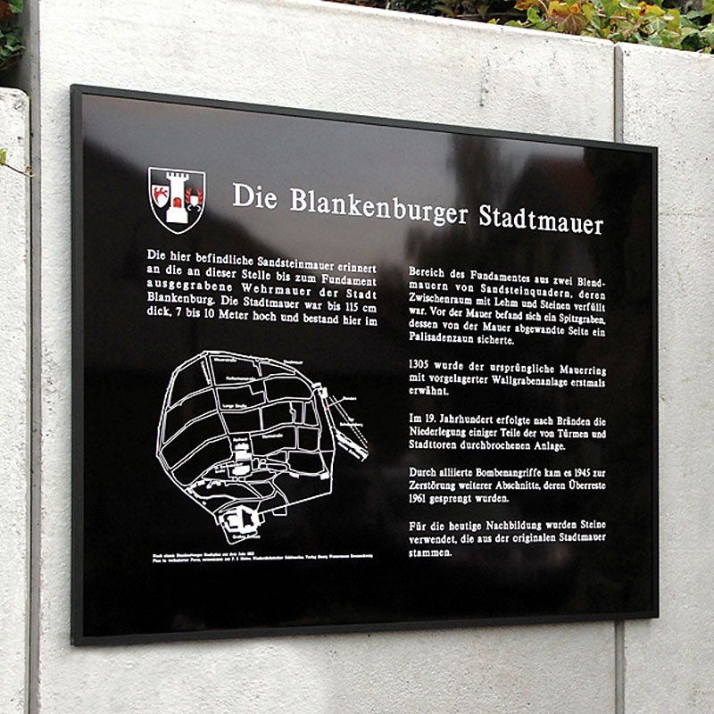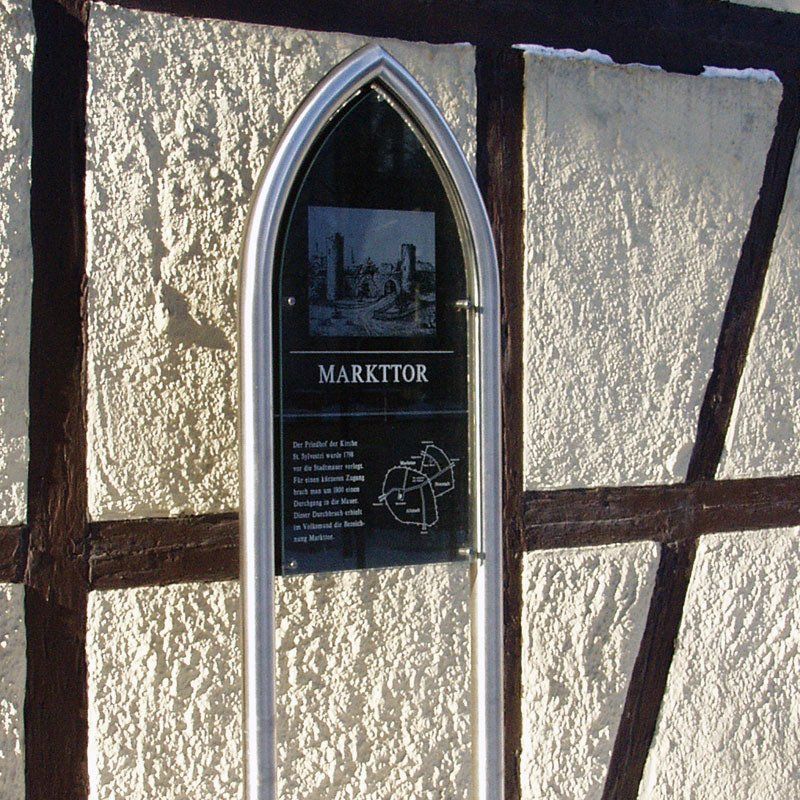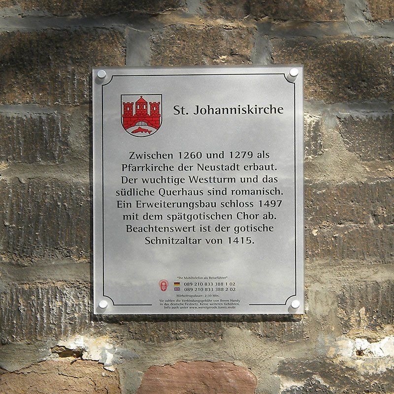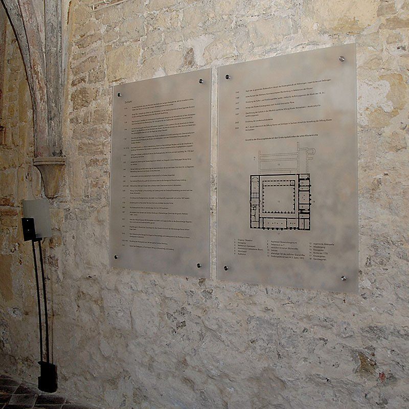 Plexiglas, mattiert, Beschriftung im Digitaldruck, Aluminium-Abstandshalter
